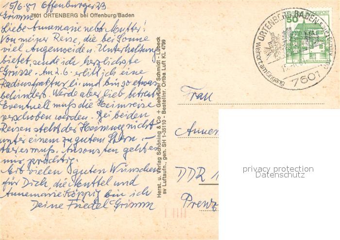 73663719 alte Postkarte Ortenberg Baden Fliegeraufnahme bei Offenburg postalisch gelaufen Erhaltung siehe scans [LiesaD40] KatCode: 11110008317100