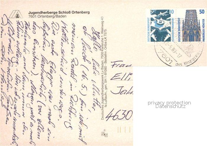 73107280 alte Postkarte Ortenberg Baden Jugendherberge Schloss Ortenberg postalisch gelaufen Erhaltung siehe scans [NatalD47] KatCode: 11110008317100