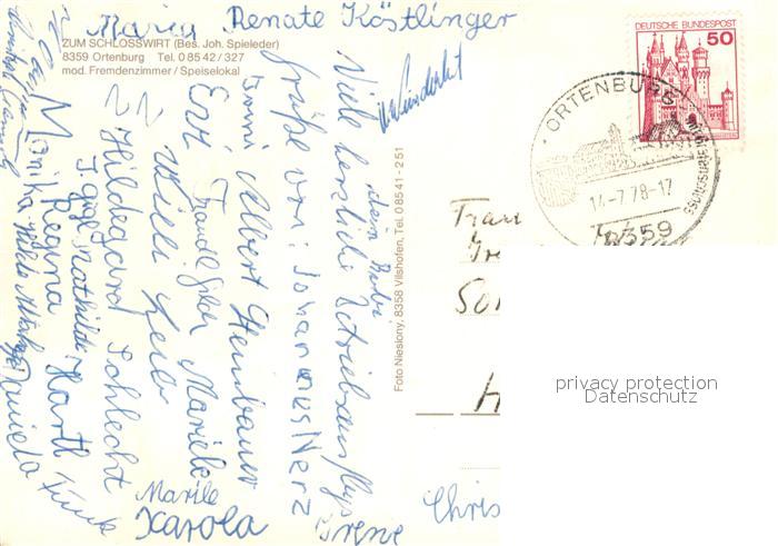 73646321 alte Postkarte Ortenburg Hotel Restaurant Zum Schlosswirt Wild postalisch gelaufen Erhaltung siehe scans [FriedD77] KatCode: 11110009275138