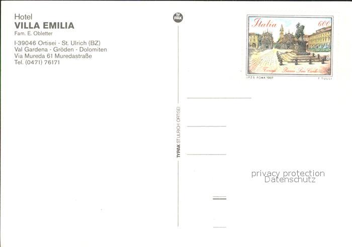 Ortisei St Ulrich Hotel Villa Emilia postalisch nicht gelaufen Erhaltung siehe scans