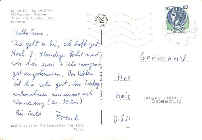 old postcard Ortisei St Ulrich Panorama Val Gardena Dolomiten postalisch gelaufen Erhaltung siehe scans