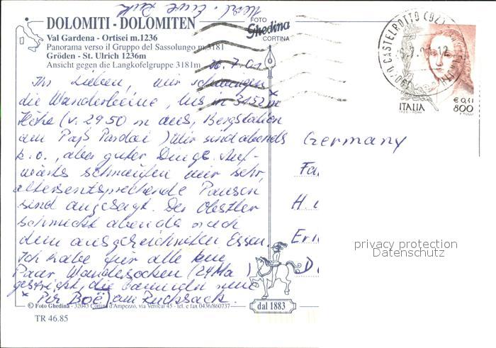 old postcard Ortisei St Ulrich Panorama verso il Gruppo del Sassolungo postalisch gelaufen Erhaltung siehe scans