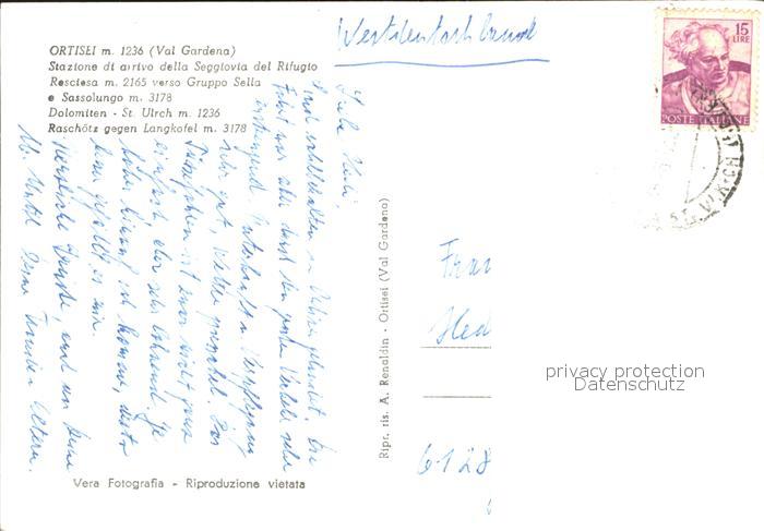 old postcard Ortisei St Ulrich Raschoetz gegen Langkofel postalisch gelaufen Erhaltung siehe scans