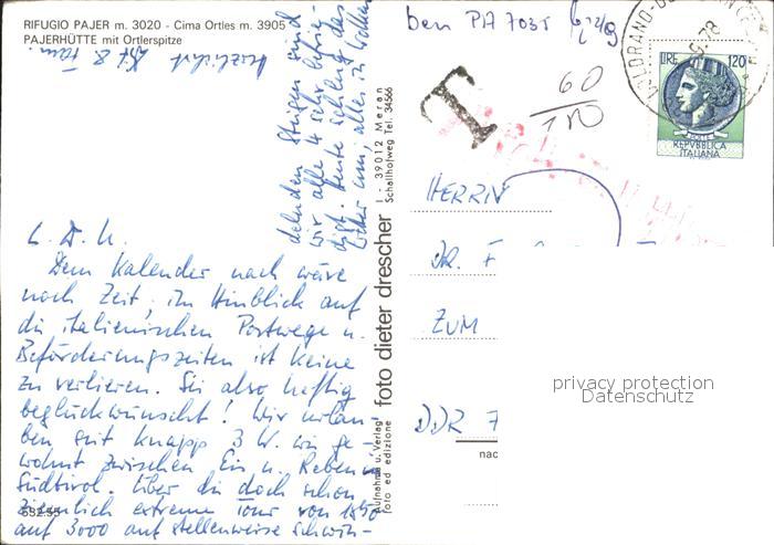 old postcard Ortler Rifugio Pajer Pajerhuette postalisch gelaufen Erhaltung siehe scans