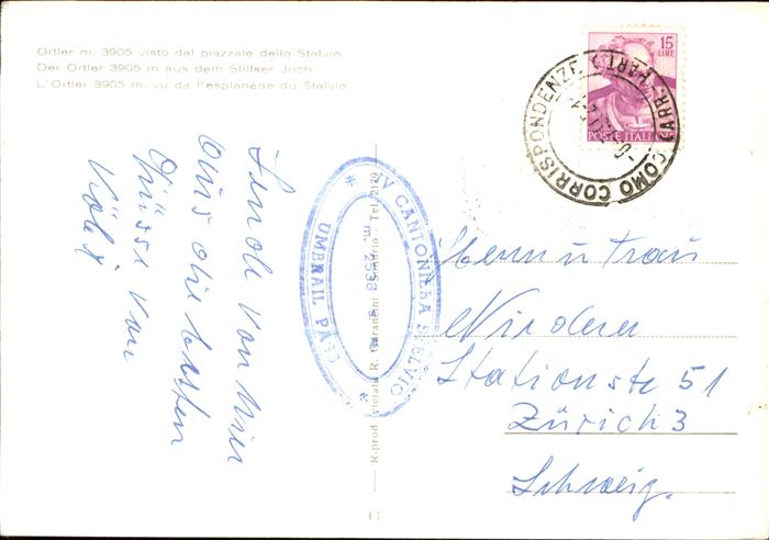 old postcard Ortler Stilfserjoch-Hotel postalisch gelaufen