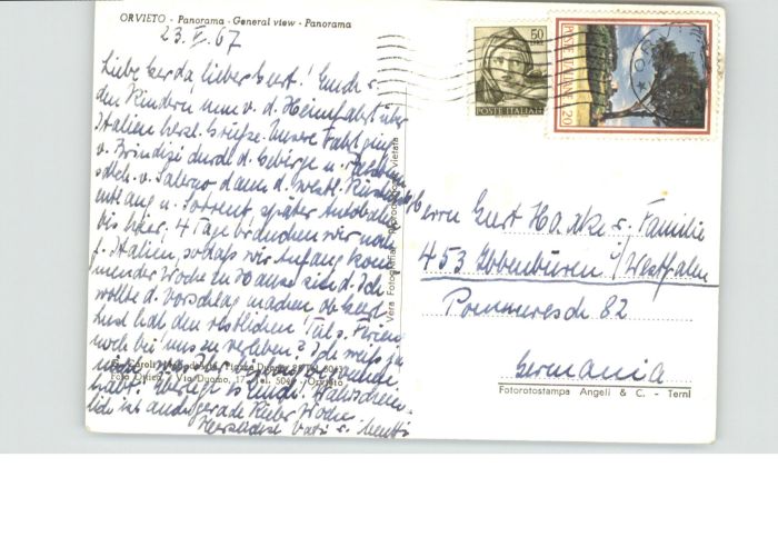old postcard Orvieto postalisch gelaufen
