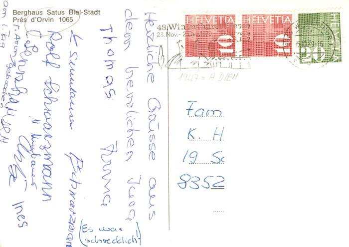 13971005 alte Postkarte Orvin BE Berghaus Satus Biel-Stadt postalisch gelaufen Erhaltung siehe scans [FriedD77] KatCode: 11470060155078