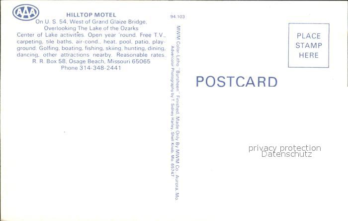 72306821 Osage Beach Hilltop Motel postalisch nicht gelaufen Erhaltung siehe scans KatCode: 14140270000000