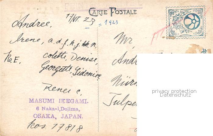 13341390 Osaka The Nakanoshima Park postalisch gelaufen Erhaltung siehe scans [WerneD78] old postcard Wern Katcode 12050