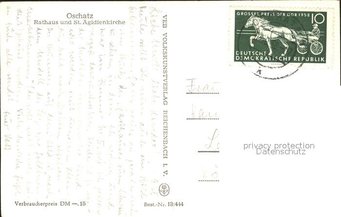 72030933 alte Postkarte Oschatz Rathaus St aegidienkirche postalisch gelaufen Erhaltung siehe scans KatCode: 11110014389240