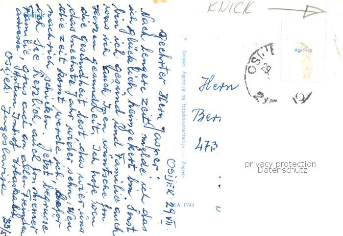 73830398 Osijek Croatia Teilansichten Kirche postalisch gelaufen Erhaltung siehe scans [FriedD77] old postcard Frie Katcode 11260