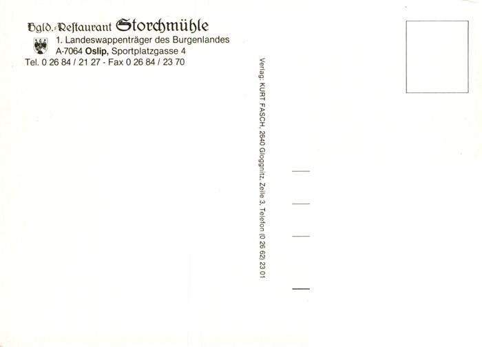 Oslip Burgenland AT Restaurant Storchmuehle Hausmusik Storch postalisch nicht gelaufen Erhaltung siehe scans [FriedD77]