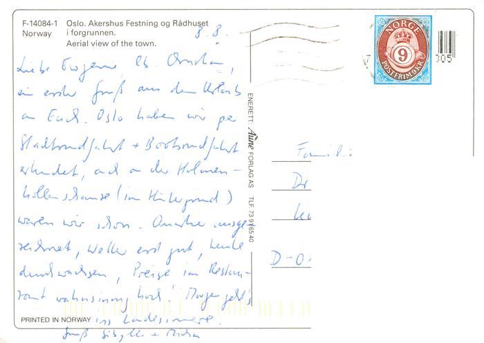 old postcard Oslo Norge Fliegeraufnahme Akershus Festning og Radhuset postalisch gelaufen Erhaltung siehe scans [WerneD78]