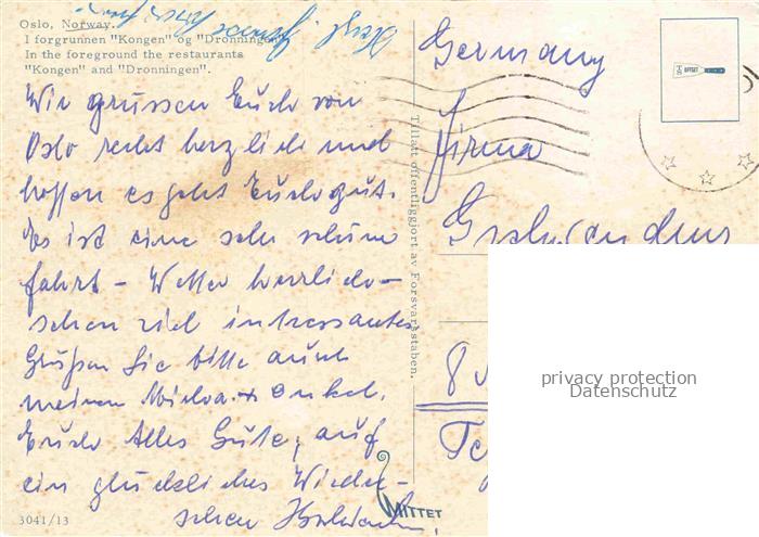 74137423 old postcard OSLO Norge Kongen og Dronningen Fliegeraufnahme postalisch gelaufen Erhaltung siehe scans [WerneD78] KatCode: 11380