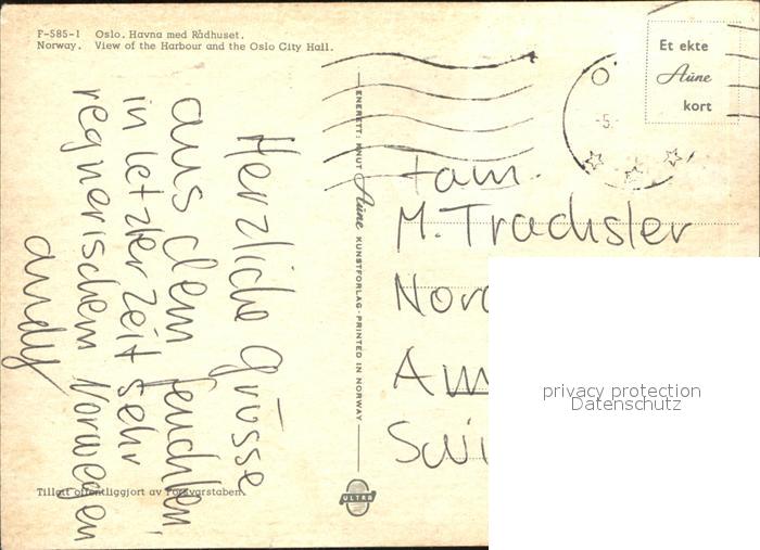 old postcard Oslo Norwegen Havna Radhuset Harbour City Hall Schiffe postalisch gelaufen