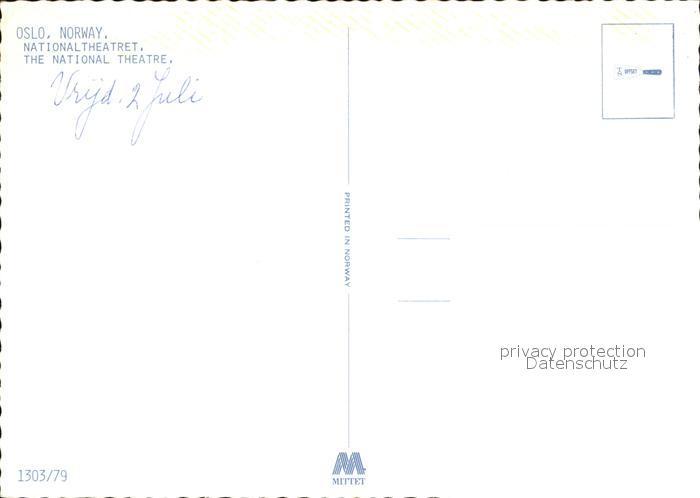 Oslo Norwegen Nationaltheater postalisch nicht gelaufen Erhaltung siehe scans