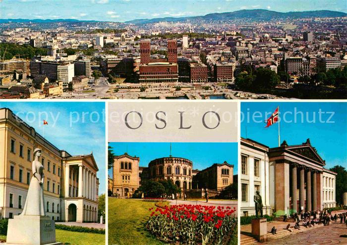 Oslo Norwegen Panorama Radhuset Slottet Stortinget Universitetet postalisch nicht gelaufen Erhaltung siehe scans [WerneD78]