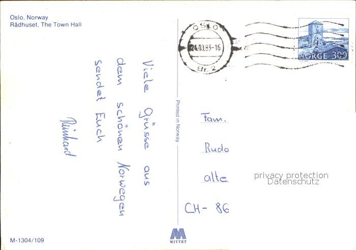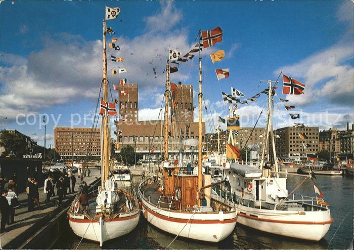old postcard Oslo Norwegen Radhuset Town Hall Schiffe postalisch gelaufen Erhaltung siehe scans