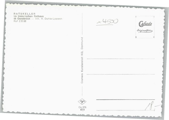 40690192 OSNABRueCK CITY atskeller postalisch nicht gelaufen Alte Ansichtskarte Postkarte Katcode 11110003404000
