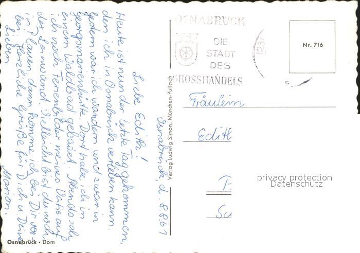 72077003 alte Postkarte Osnabrueck Dom postalisch gelaufen KatCode: 11110003404000