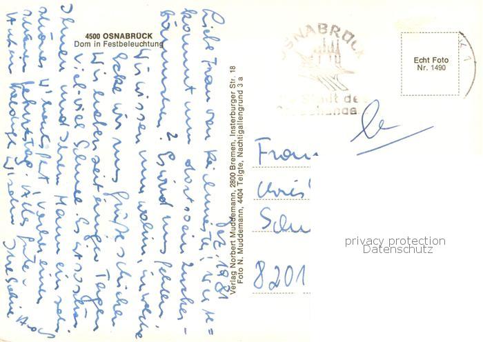 73780147 alte Postkarte Osnabrueck Dom in Festbeleuchtung zur Weihnachtszeit postalisch gelaufen Erhaltung siehe scans [FriedD77] KatCode: 11110003404000