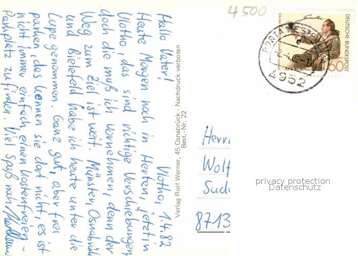 72909994 alte Postkarte Osnabrueck Dom Vitischanze Katharinenkirche Rathaus postalisch gelaufen Erhaltung siehe scans [LiesaD40] KatCode: 11110003404000