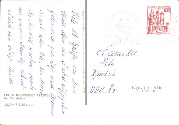 71909920 alte Postkarte Osnabrueck Erholungsgebiet Attersee postalisch gelaufen Erhaltung siehe scans KatCode: 11110003404000