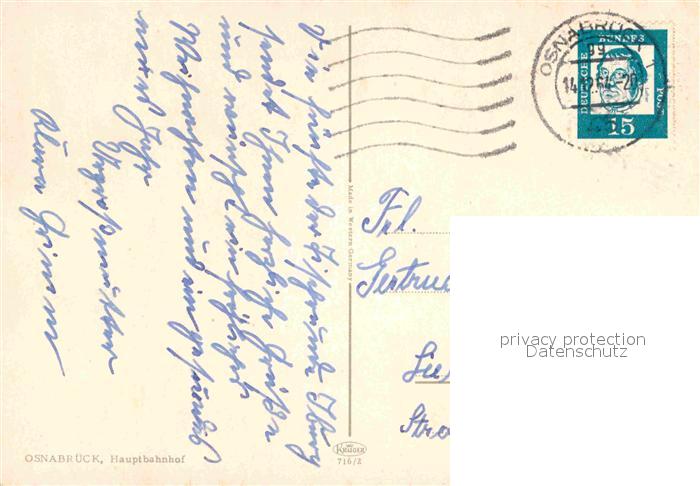 72621797 alte Postkarte Osnabrueck Hauptbahnhof postalisch gelaufen Erhaltung siehe scans [WerneD78] KatCode: 11110003404000