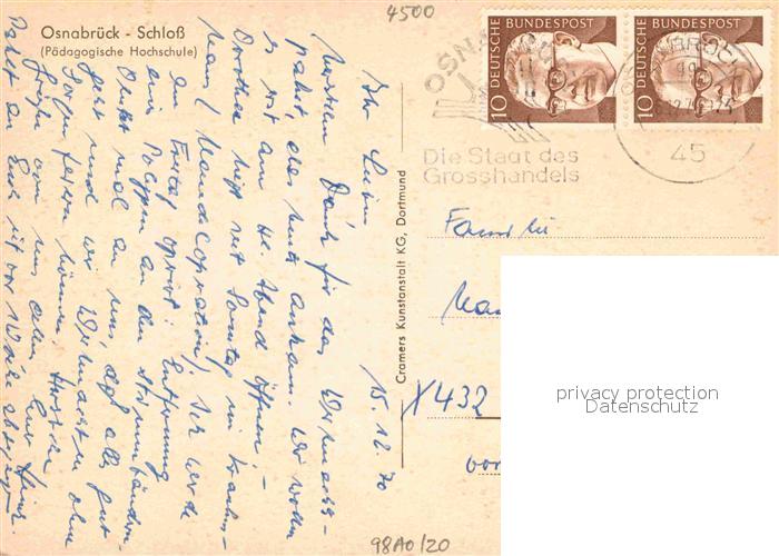 72909990 alte Postkarte Osnabrueck Paedagogische Hochschule postalisch gelaufen Erhaltung siehe scans [LiesaD40] KatCode: 11110003404000