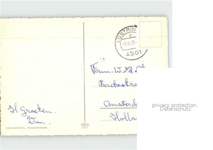 72256872 alte Postkarte Osnabrueck Pernickelturm postalisch gelaufen Erhaltung siehe scans KatCode: 11110003404000