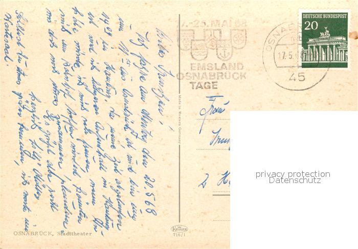 73132186 alte Postkarte Osnabrueck Stadttheater postalisch gelaufen Erhaltung siehe scans [KathaD81] KatCode: 11110003404000