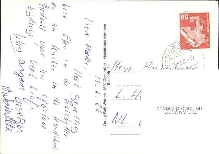 72285398 alte Postkarte Osnabrueck Vitischanze Dom Marienkirche Schlossgarten postalisch gelaufen Erhaltung siehe scans KatCode: 11110003404000