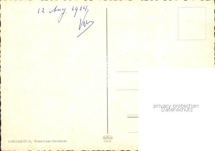 72270848 Osnabrueck Waterloo Denkmal postalisch nicht gelaufen Erhaltung siehe scans KatCode: 11110003404000