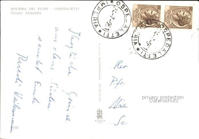 old postcard Ospedaletti Palazzo Alexandra postalisch gelaufen Erhaltung siehe scans