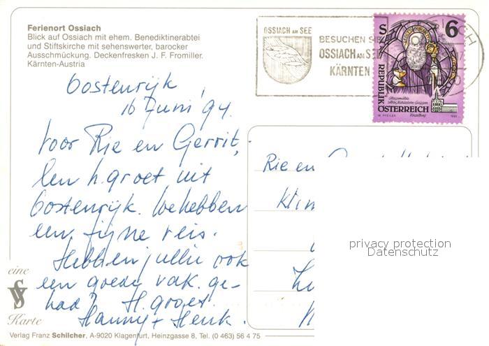 73033373 alte Postkarte Ossiach Benediktinerabtei Stiftskirche Fliegeraufnahme postalisch gelaufen Erhaltung siehe scans [PaolaD17] KatCode: 11390212021006