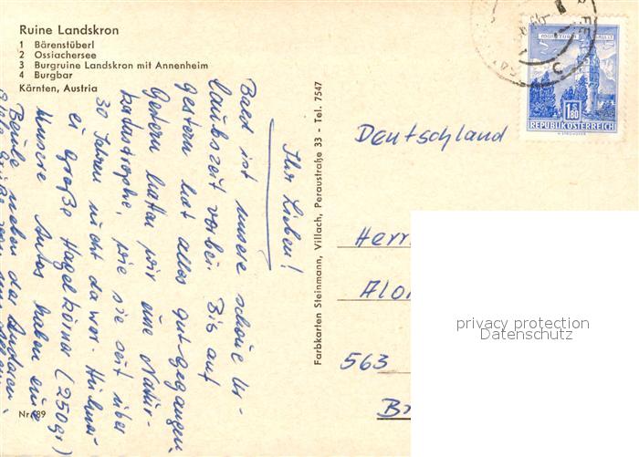 73243796 alte Postkarte Ossiach Burgruine Landskron Annenheim Baerenstueberl Burgbar Ossiachersee Fliegeraufnahme postalisch gelaufen Erhaltung siehe scans [FriedD77] KatCode: 11390212021006