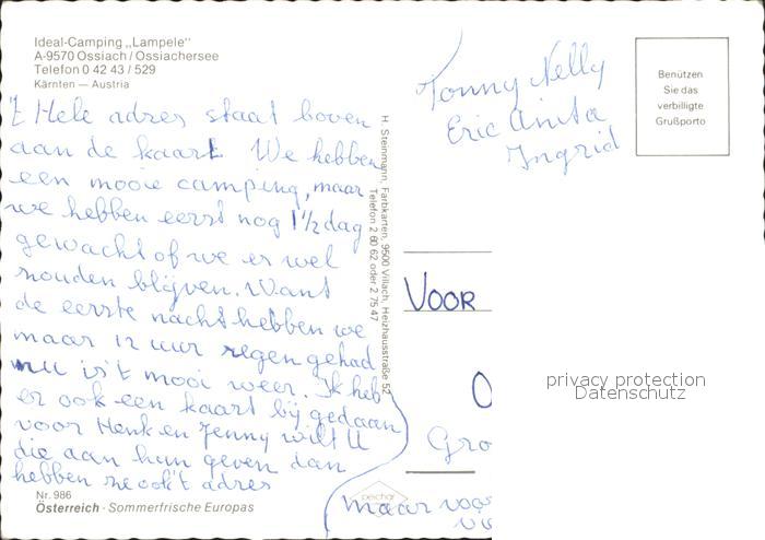 72001998 Ossiach Camping Lampele postalisch nicht gelaufen Erhaltung siehe scans KatCode: 11390212021006