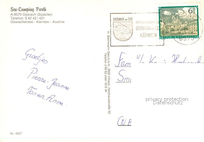 73171671 alte Postkarte Ossiach Camping Parth postalisch gelaufen Erhaltung siehe scans [NatalD47] KatCode: 11390212021006