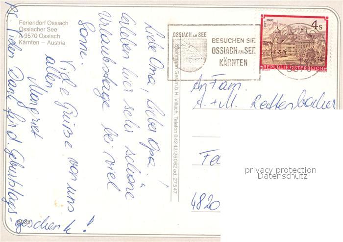 73288046 alte Postkarte Ossiach Fliegeraufnahme postalisch gelaufen Erhaltung siehe scans [NatalD47] KatCode: 11390212021006