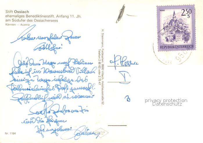 73339370 alte Postkarte Ossiach Fliegeraufnahme Benediktinerstift Suedufer des Ossiachersees postalisch gelaufen Erhaltung siehe scans [LiesaD40] KatCode: 11390212021006