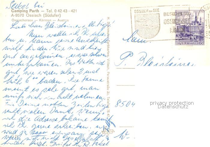 13182923 alte Postkarte Ossiach Fliegeraufnahme Camping Parth postalisch gelaufen Erhaltung siehe scans [NatalD47] KatCode: 11390212021006