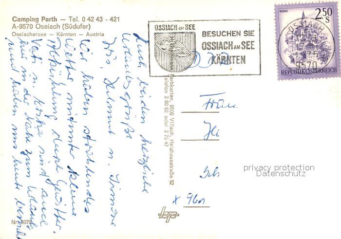 13216985 alte Postkarte Ossiach Fliegeraufnahme Camping Parth postalisch gelaufen Erhaltung siehe scans [LiesaD40] KatCode: 11390212021006