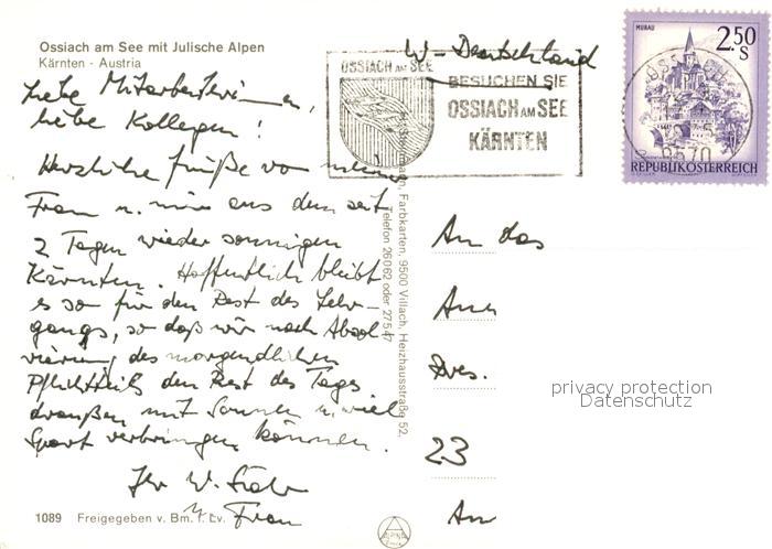 73054489 alte Postkarte Ossiach Fliegeraufnahme Julische Alpen postalisch gelaufen Erhaltung siehe scans [KathaD81] KatCode: 11390212021006