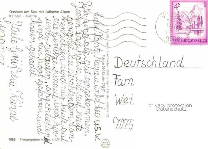72716486 alte Postkarte Ossiach Fliegeraufnahme Seepartie mit Julischen Alpen postalisch gelaufen Erhaltung siehe scans [LiesaD40] KatCode: 11390212021006