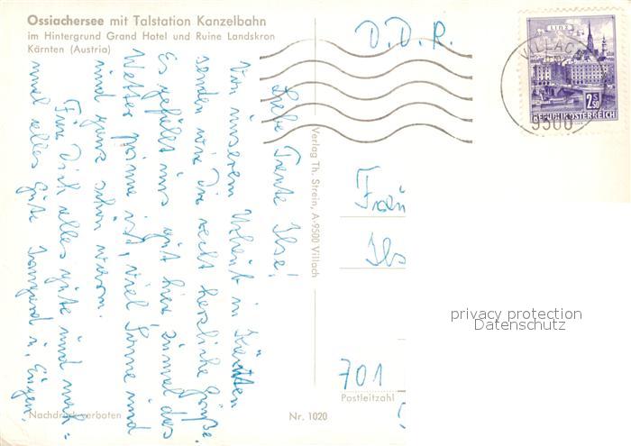 73286561 alte Postkarte Ossiach Kanzelbahn Grand Hotel Ruine Landskron postalisch gelaufen Erhaltung siehe scans [NatalD47] KatCode: 11390212021006
