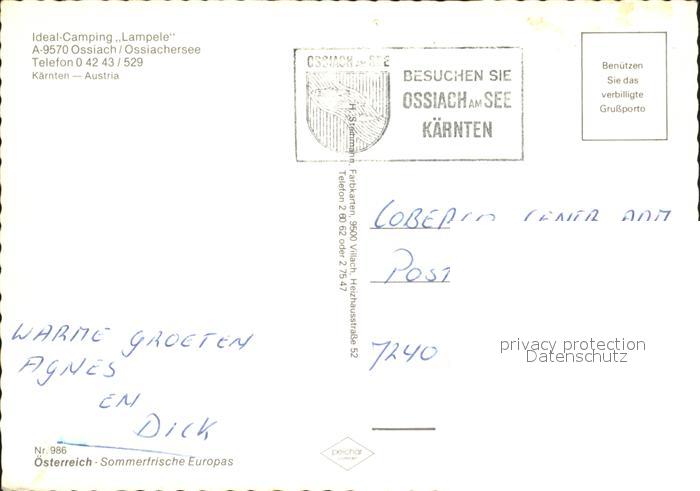 72092334 Ossiach Ossiachersee Camping Lampele Fliegeraufnahme postalisch nicht gelaufen Erhaltung siehe scans KatCode: 11390212021006