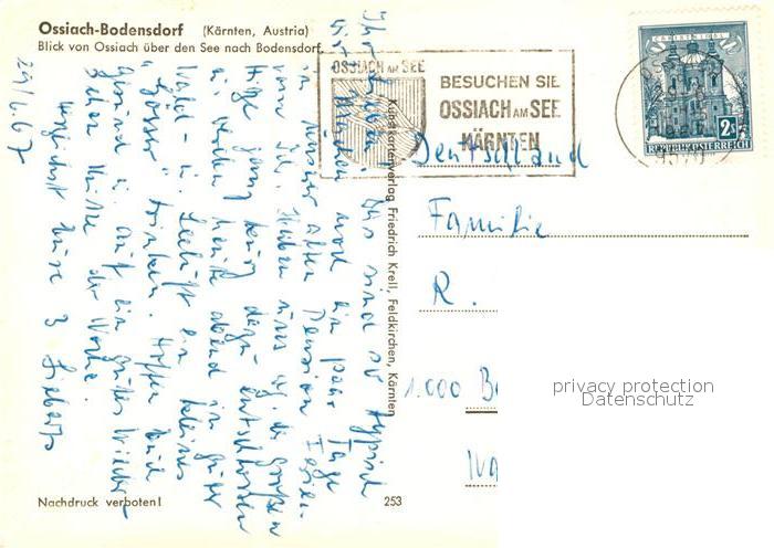 73304363 alte Postkarte Ossiach Panorama Blick ueber den See nach Bodensdorf postalisch gelaufen Erhaltung siehe scans [FriedD77] KatCode: 11390212021006