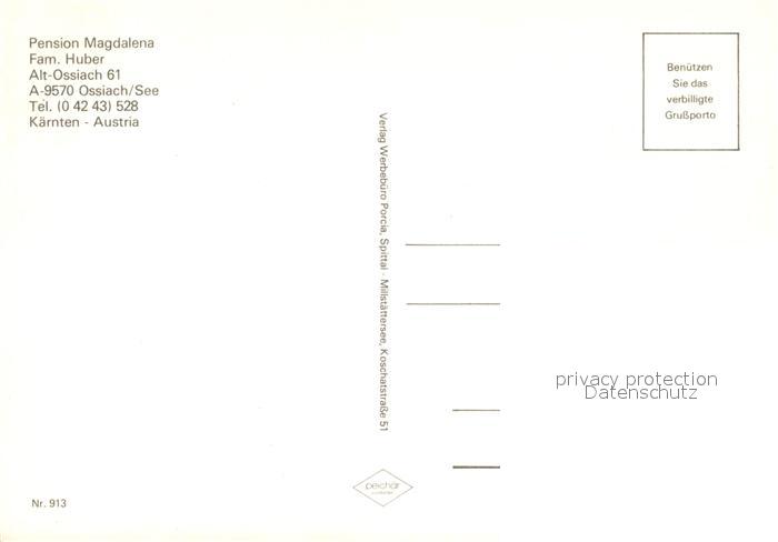 13234834 Ossiach Pension Magdalena Ossiachersee postalisch nicht gelaufen Erhaltung siehe scans [FriedD77] KatCode: 11390212021006