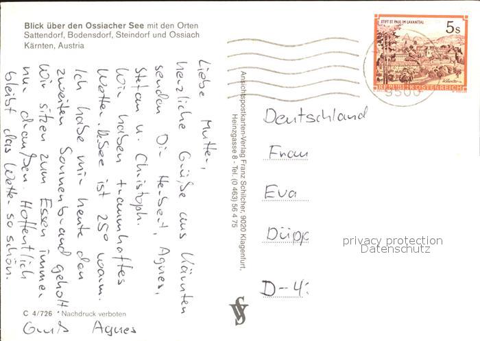 72443959 alte Postkarte Ossiach See Sattendorf Bodensdorf Steindorf postalisch gelaufen Erhaltung siehe scans KatCode: 11390212021006