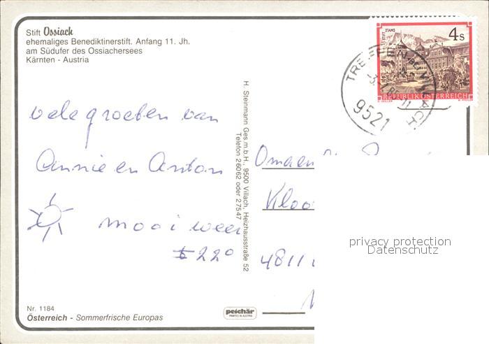 72605806 alte Postkarte Ossiach Stift Ossiach Fliegeraufnahme postalisch gelaufen Erhaltung siehe scans [AndreD76] KatCode: 11390212021006